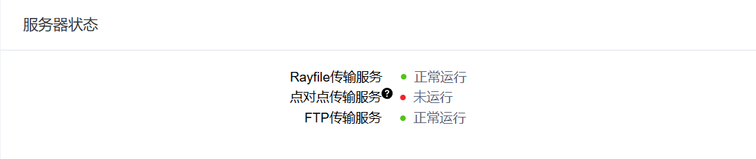 显示Rayfile传输服务、点对点传输服务、FTP传输服务状态。