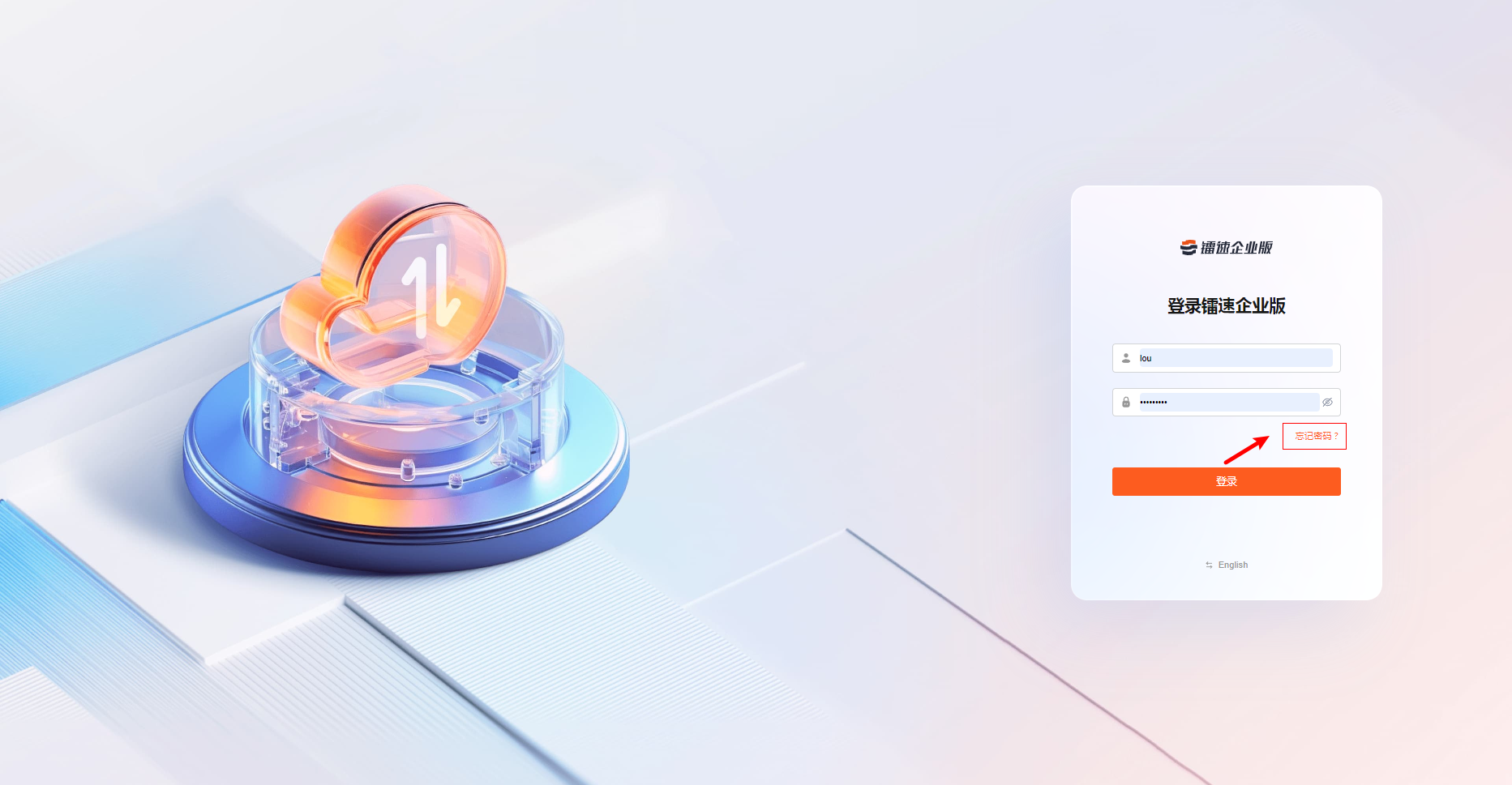 - 点击【忘记密码】,输入用户的登录邮箱,使用收到的验证码重置密码。 注意:忘记密码功能需要配置系统邮箱,具体在管理端操作指南-配置-邮箱配置中查看。