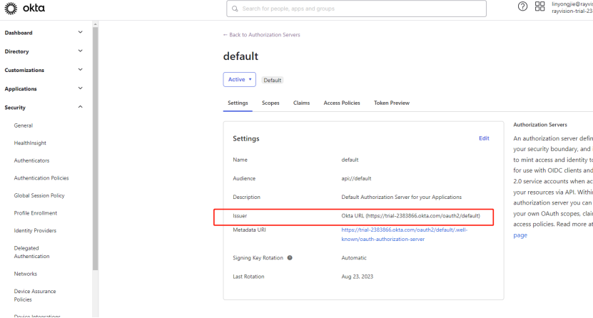 4)如图点击进入okta 的配置信息
