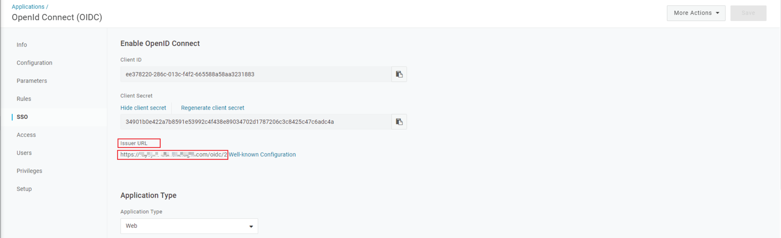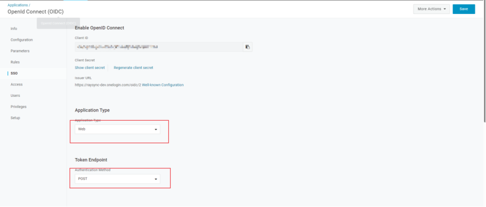 5)在 SSO 选项卡中,Application Type 选择 Web;Authentication Method 选择 POST 作为令牌端点,单击Save
