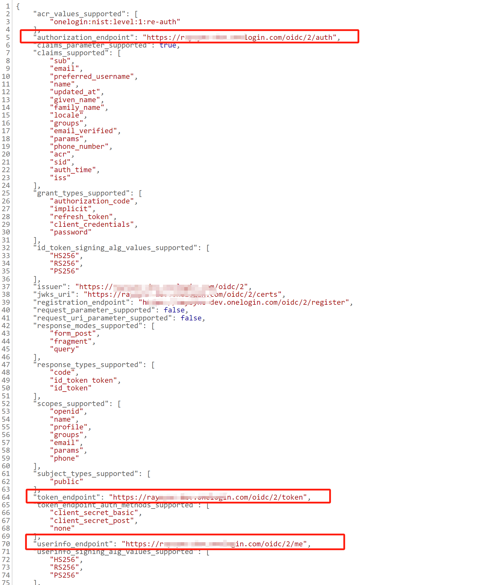 7)步骤六获取的json 信息中,获取authorization_endpoint,token_endpoint, userinfo_endpoint