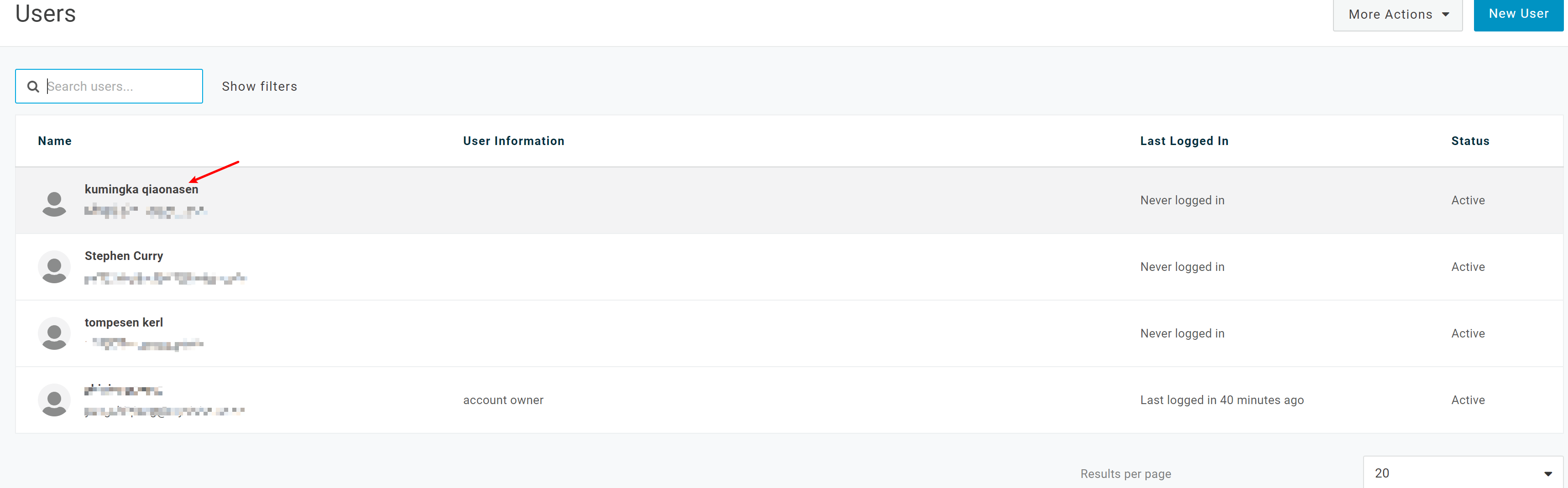单击导航栏Users > Users,然后选择一个用户,点击进入