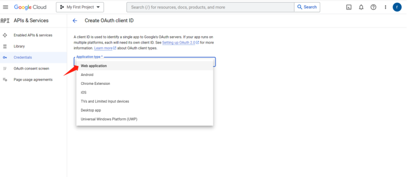 4)选择OAuth client ID