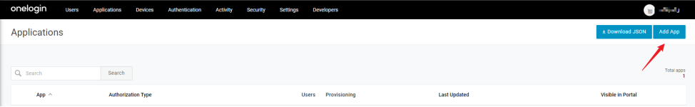 1)进入您的Onelogin管理页面,在上方导航栏中,点击 Application > Add App