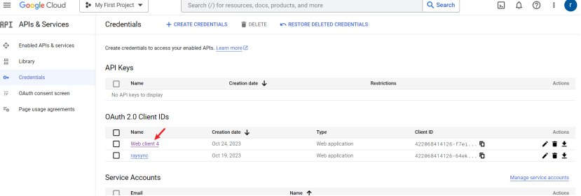 7)下载json文件或者点击进入您的Client,获取您的Client ID 、Client secret