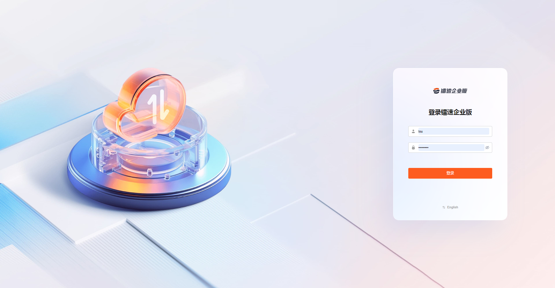 进入镭速传输用户登录页面。登录页面URL地址一般为服务器IP+端口号“8090”(如:http://192.168.1.1:8090)