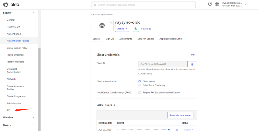 4)如图点击进入okta 的配置信息