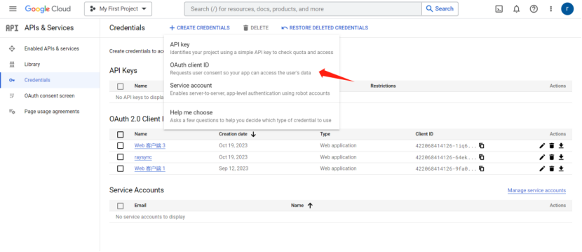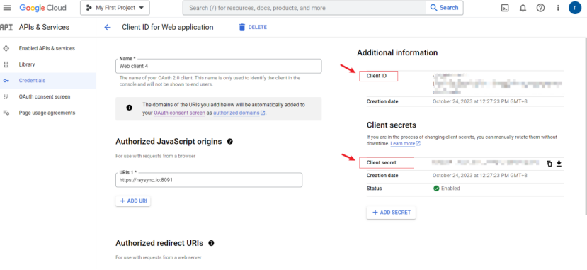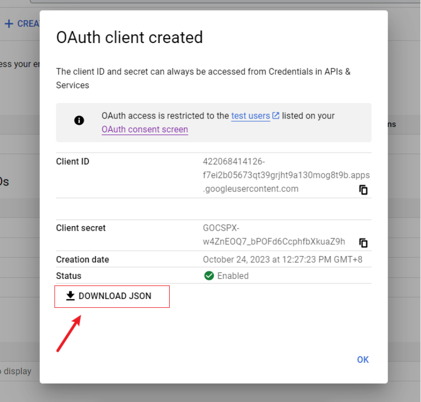 7)下载json文件或者点击进入您的Client,获取您的Client ID 、Client secret