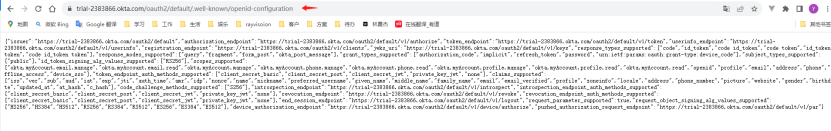 6)根据issuer,获取idp 的配置信息地址,转换地址如:{{issuer}}/.well-known/openid-configuration,转换完成后,在浏览器输入地址