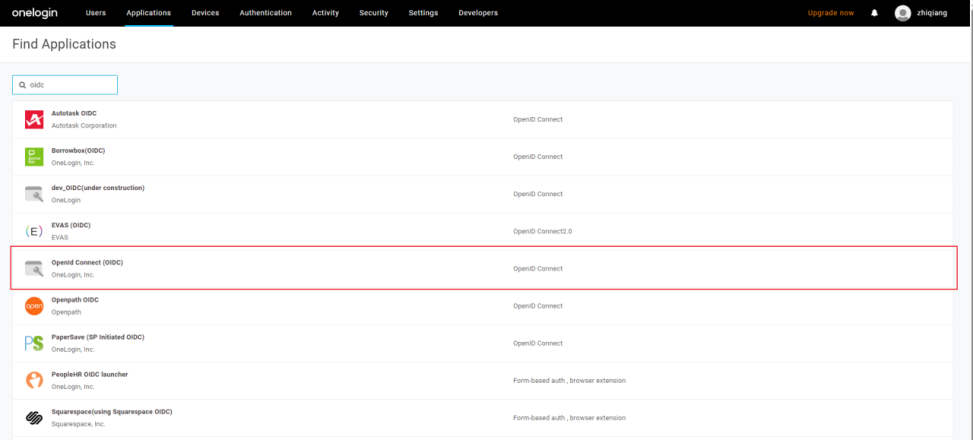2)搜索”OpenId Connect“或者”oidc“,然后选择Open Connect(OIDC)应用程序