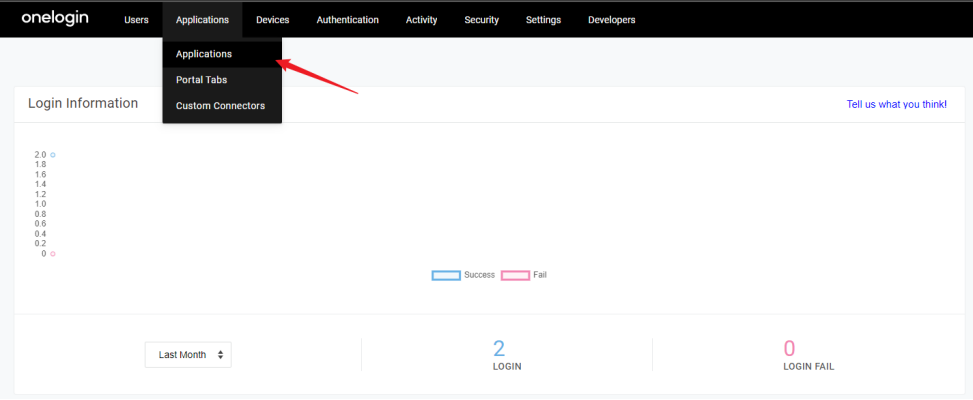 1)进入您的Onelogin管理页面,在上方导航栏中,点击 Application > Add App